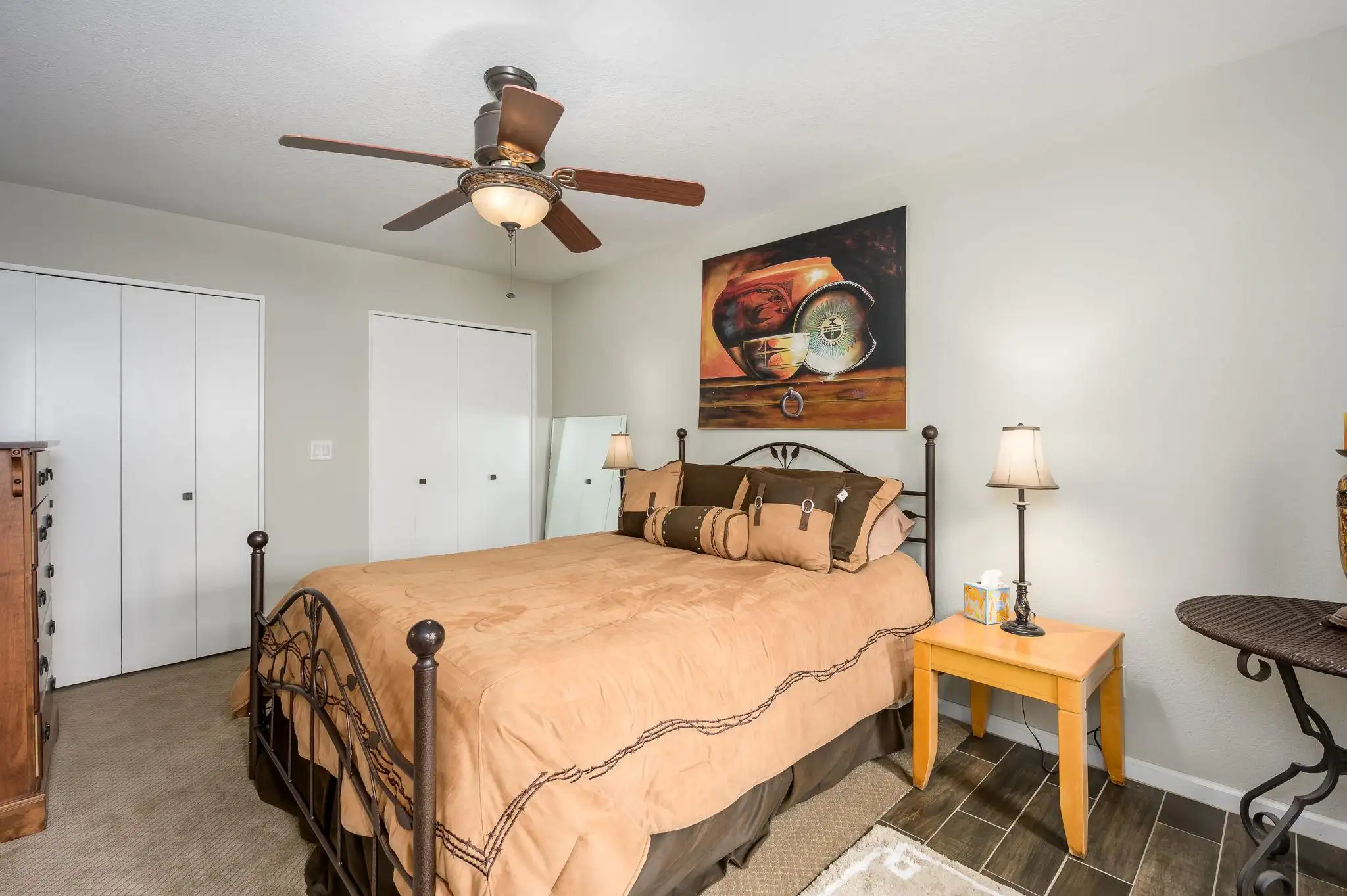 Tucked away in a peaceful community, this home offers the best of both worlds: tranquil privacy and easy access to Cave Creek’s vibrant shops, restaurants, and scenic trails. Inside, you’ll find colorful décor, warm natural light, and charming Southwestern finishes that create a cozy and inviting atmosphere.