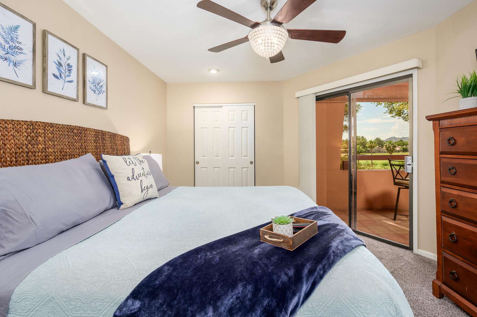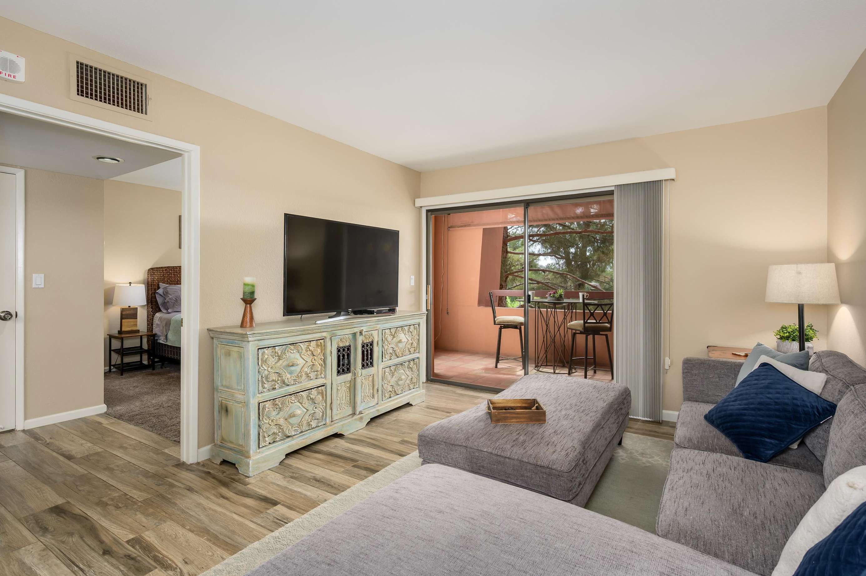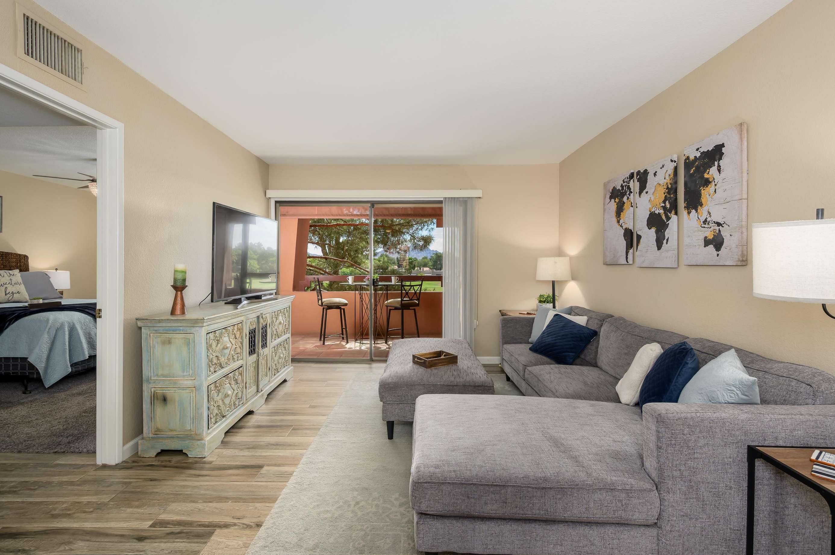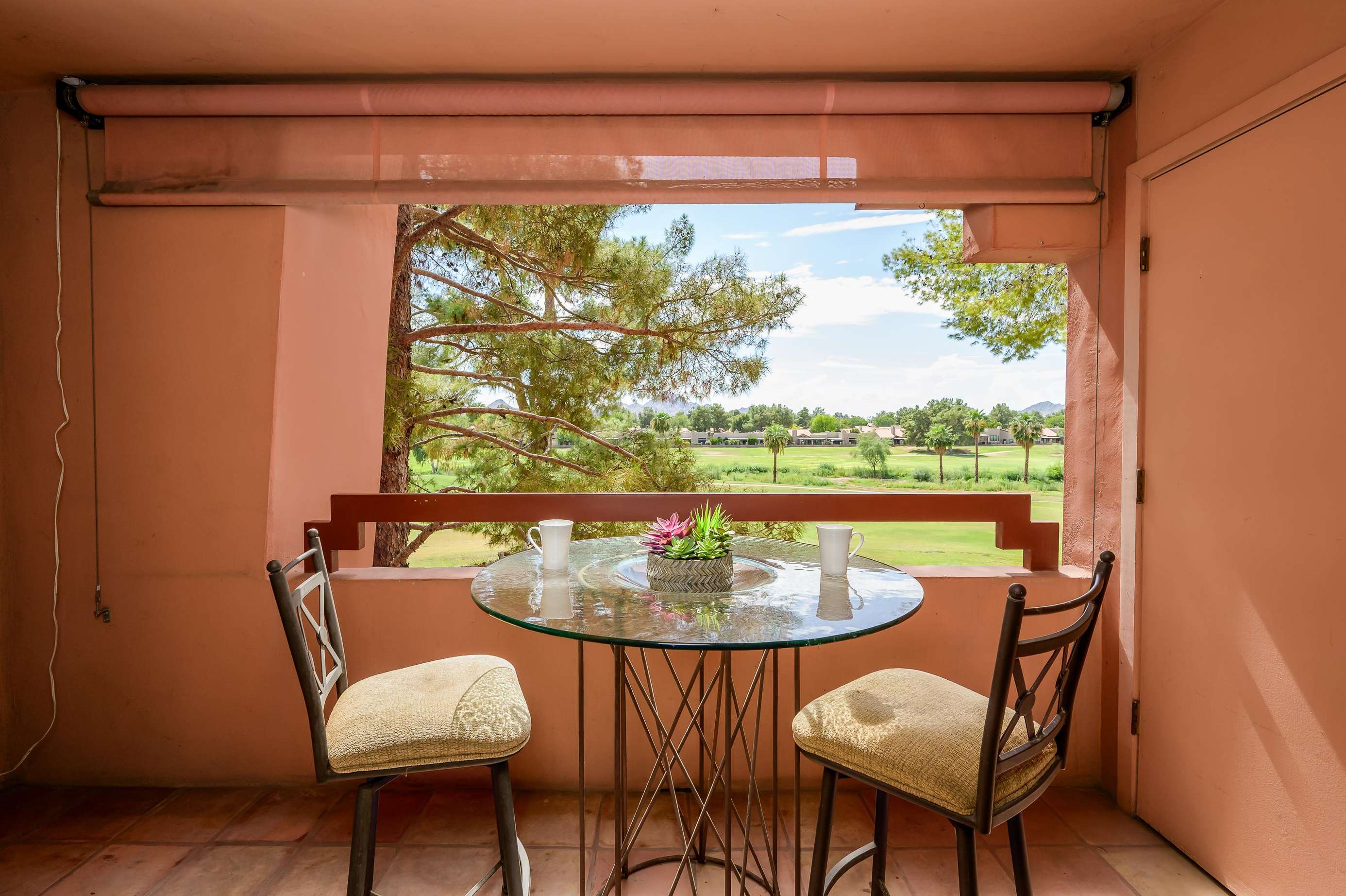 Stay in this comfortable unit with views of Stone Creek Golf Course and Camelback Mountains. This quiet one-bedroom, one-bath unit is fully furnished for your vacation. Anasazi Village is a gated community with five pools and more.